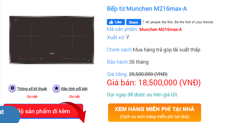 Hình ảnh sản phẩm + giá cả + xuất xứ + bộ quà tặng được đăng tải trên web bepnamanh.com