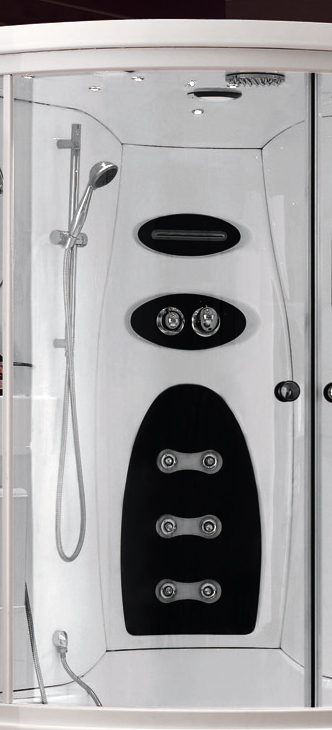 6 mắt massage, nút điều chỉnh sen và nhiệt độ nước được đặt trên tấm cao su màu đen tuyền. Trông vào tạo nên điểm nhấn vô cùng ấn tượng cho phòng xông hơi Euroking.