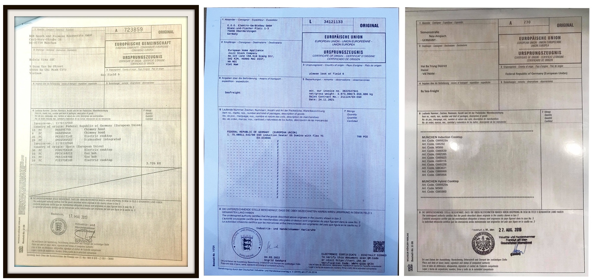 Giấy chứng nhận xuất nhập khẩu bếp từ