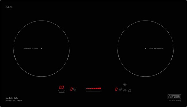 Sản phẩm bếp từ Giovani G 270 SD là dòng bếp chuyên đặt âm cho phòng bếp của mỗi gia đình. Đây là dòng bếp từ Giovani nhập khẩu nguyên chiếc từ Ý nên bếp có kiểu dáng sang trọng hiện đại với thiết kê hai vùng nấu từ có tổng công suất là 3600W. Bếp từ Giovani G 270 SD là dòng sản phẩm bếp từ đôi sử dụng linh kiện cao cấp như: Mặt kính Schott Ceran là mặt kính gốm thủy tinh , không chứa các kim loại độc hại, hoàn toàn không gây hại cho sức khỏe người tiêu dùng. Kết hợp cùng hệ thống mâm từ Indution tập trung nhiệt lượng lớn đến 90% nhiệt vào đáy nồi mà chỉ thất thoát nhiệt 10% ra bên ngoài. Bên dưới thân và đáy của bếp sử dụng toàn bộ bằng chất liệu thép không ghỉ luôn sáng bóng với thời gian và chống chọi được với khí khậu khắc nghiệt của Việt Nam. Bếp từ Giovani G 270 SD được thiết kế với bảng điều khiển cảm ứng dạng ẩn siêu nhạy gồm 9 mức điều khiển nhiệt độ, có thể tùy chỉnh theo nhu cầu đun nấu.