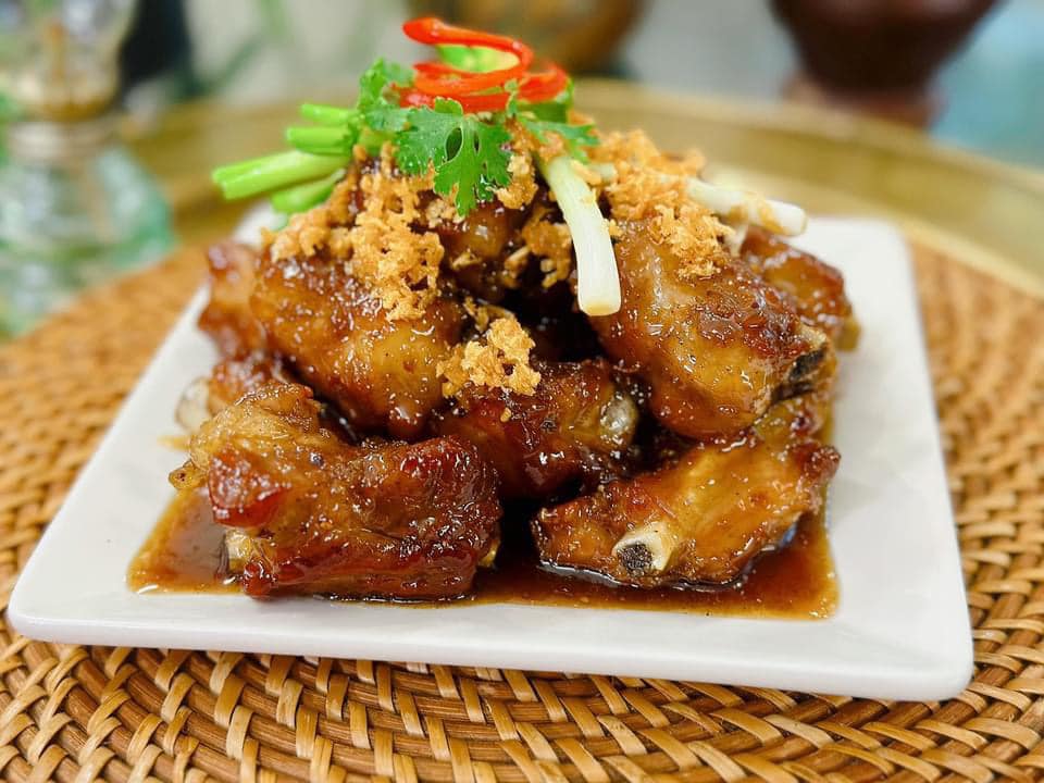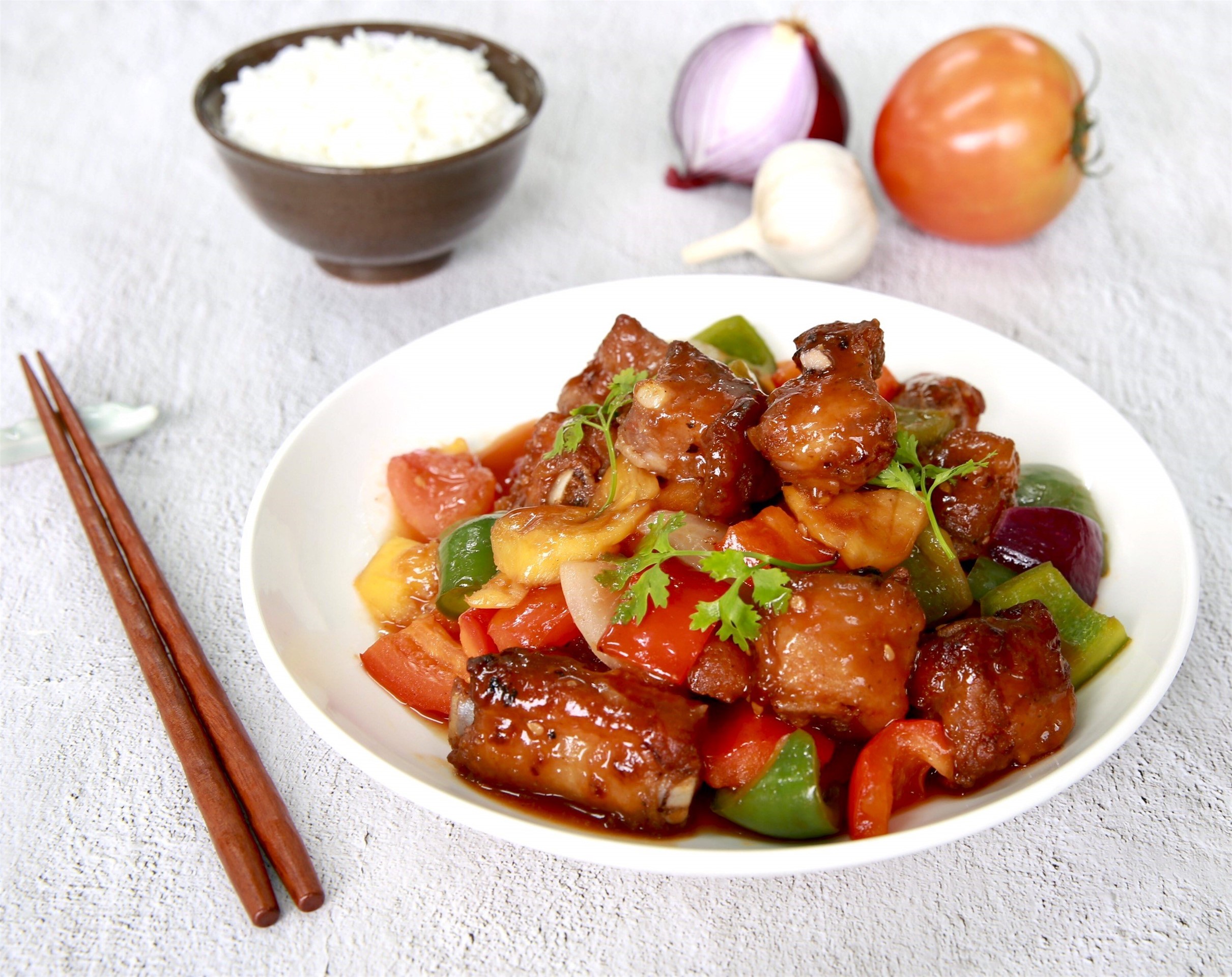 Thành phẩm đĩa sườn xào chua ngọt bắt mắt