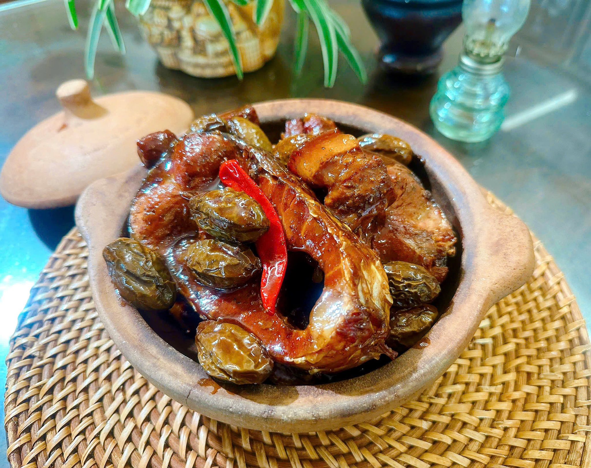 • Kho trong 45–60 phút để nước kho sánh lại, trám chuyển màu đậm và mềm bùi.