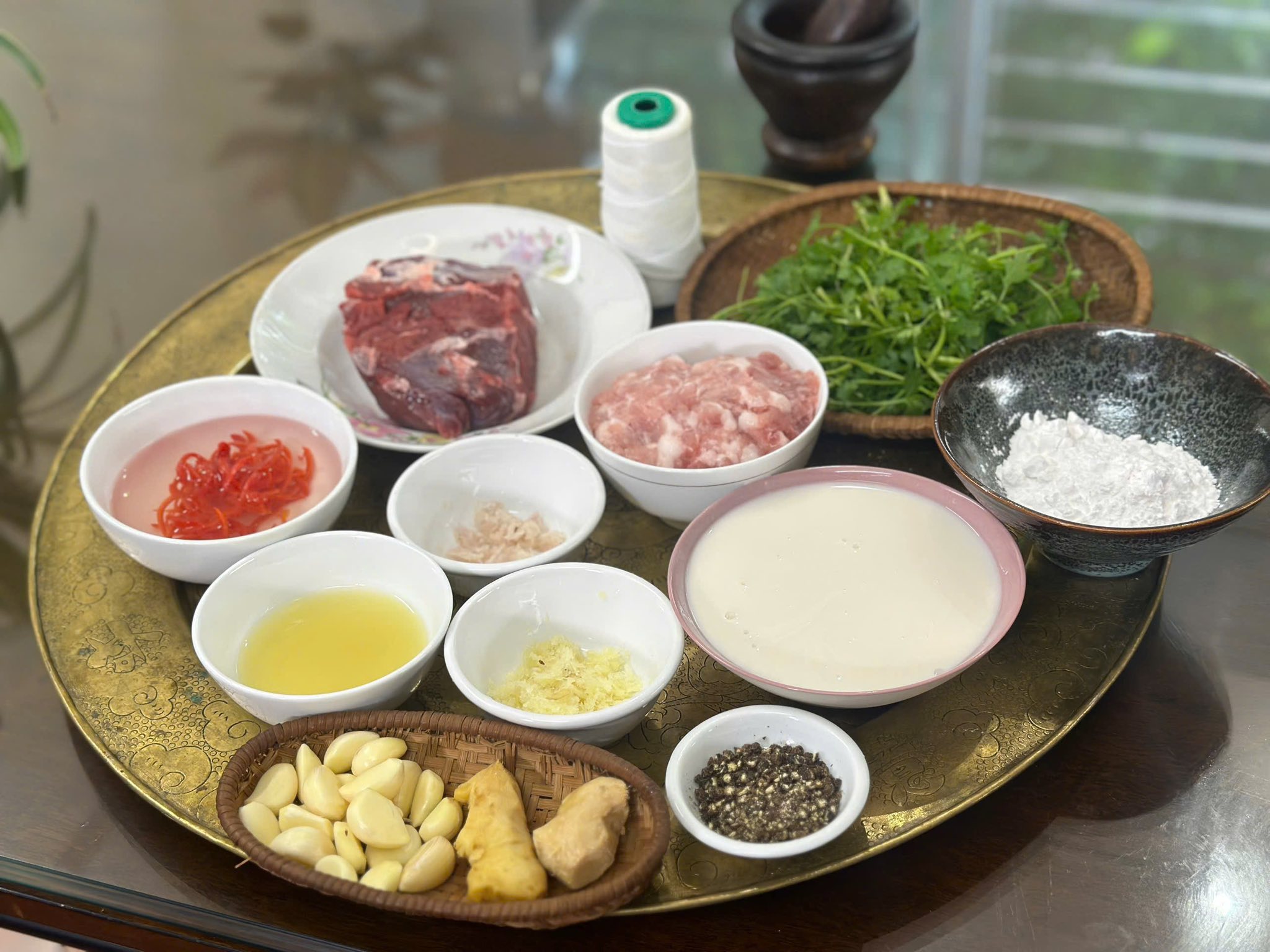 Để món bò quấn thưng đạt độ mềm và thấm, bạn nên chọn thịt bò tươi, có chút mỡ xen kẽ để khi kho không bị khô. Nguyên liệu gồm: